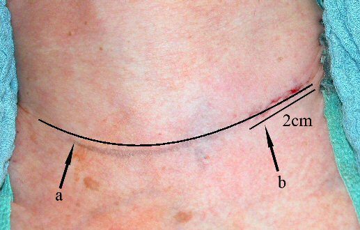 a) Hautinzision bei bilateraler Exploration